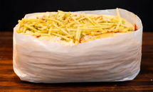 - Hot dog duplo: pão macio, molho, 2 salsichas, maionese caseira, milho, ervilha e batata palha