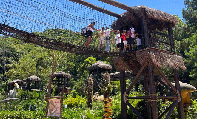 - Observações: pterolesa (Tirolesa), Dino Minerador, DinoJipe, Dinomóvel, Dino Escalada, entre outros opcionais, não estão inclusos no valor do ingresso do Parque Aventura Jurássica.