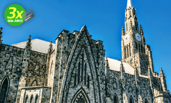 - ROTEIRO E TOUR: parada no mirante da Serra para o café (não incluso) e fotos, Catedral de Pedra Canela (gratuito), visitação de uma vinícola e degustação de vinhos, queijos e salames, parada para foto no Mundo a Vapor Trem (gratuito), almoço (incluso no pacote), visita na fábrica de chocolate (gratuito), Lago Negro (gratuito), centro de Gramado (Rua Coberta, Igreja São Pedro, Fonte do Amor e Palácio dos Festivais) tempo livre para visitar o centro de Gramado.