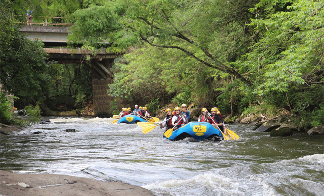 - Descida de 8 km pelas corredeiras do Rio Paranhana, com duração aproximada de 3 horas, acompanhada por guias especializados e equipamentos de segurança completos (colete e capacete).
