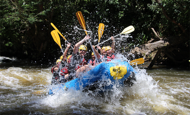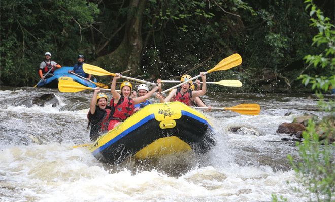 - ESTÁ INCLUSO: estacionamento gratuito, ingresso ao parque, rafting 8 km + 4 atividades inclusas, guias especializados e equipamentos de segurança.