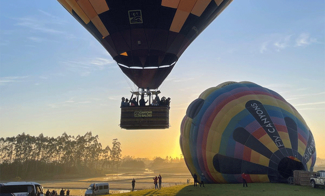 CANYONS E BALÕES ADVENTURE GROUP: voo de balão coletivo ao amanhecer em Praia Grande, em até 3 vezes sem juros no cartão