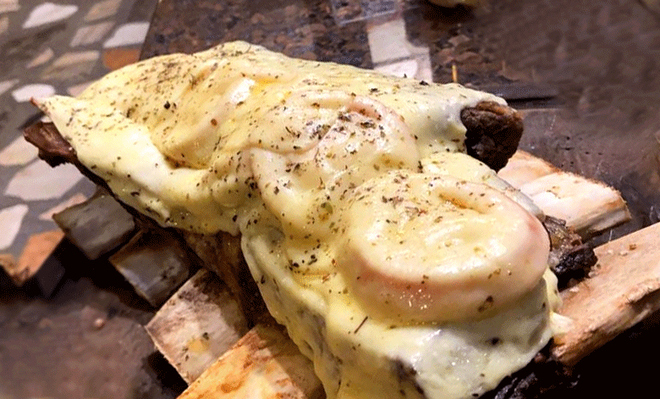 - CARNES: salame, frango, carne suína, pão de alho, granito, fraldinha, costela de forno, costela na brasa, costela com queijo muçarela, costela ao creme de alho e costela barbecue.