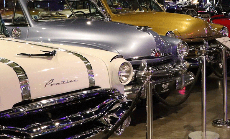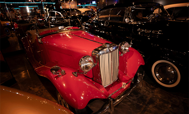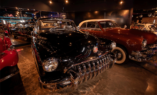 - A história do automóvel é apresentada em uma linha do tempo, com mais de 30 veículos de 1920 a 1980, como Rolls Royce, Ferrari (do seriado Magnum), Corvette, Mustang e Cadillacs.