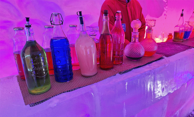 - Esculturas esculpidas em gelo como: sofá, mesa, cama e até um trenó, onde você terá total interação.