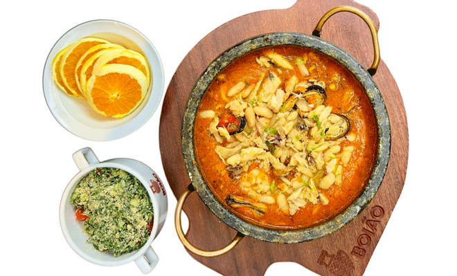 RESTAURANTE BOIÃO: feijoada de frutos do mar com acompanhamentos para 1 ou 2 pessoas