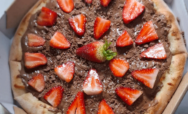 SUPER PIZZA PREMIUM: combo com pizza salgada grande com 12 fatias + pizza doce pequena com 6 fatias, com entrega grátis pra Içara e Balneário Rincão