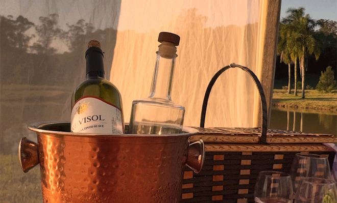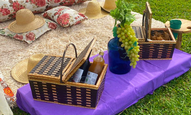 - OFERTA INCLUI: 1 piquenique na vinícola válido para 2 pessoas, incluso 1 garrafa de vinho colonial, cesta vime com vários itens, degustação de 5 rótulos.